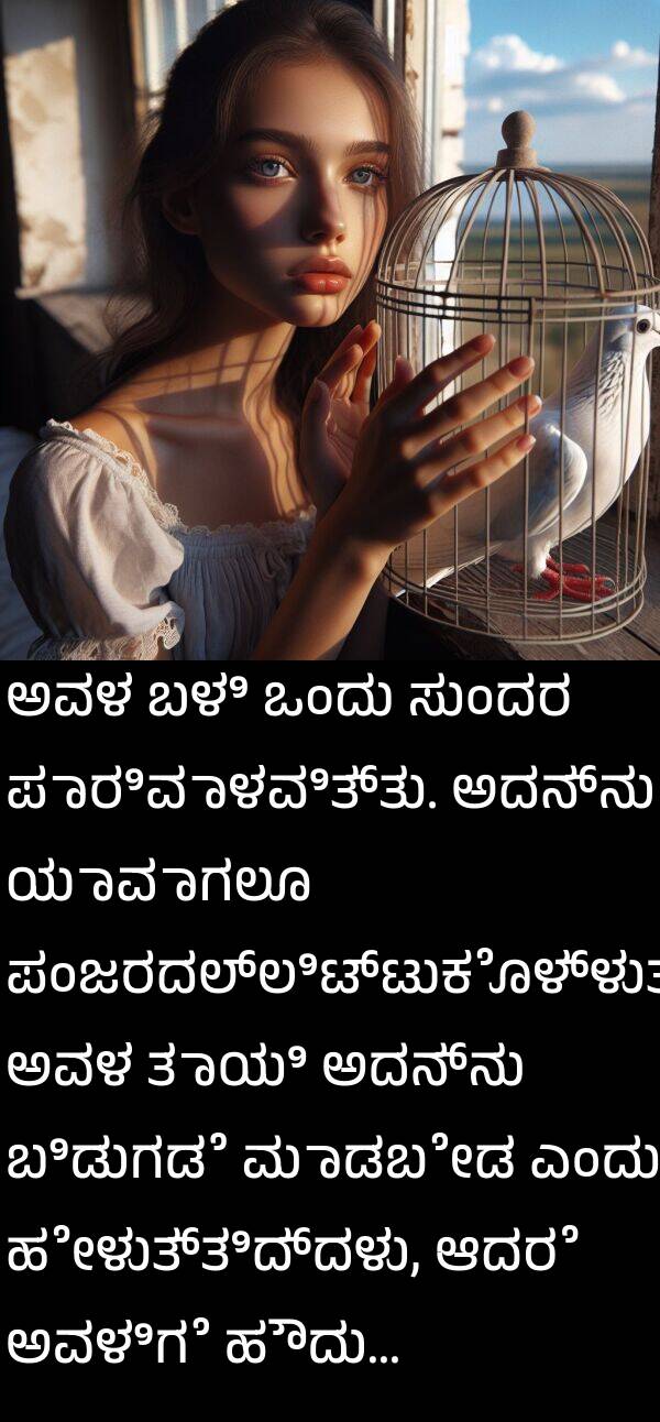 ಅವಳ ಬಳಿ ಒಂದು ಸುಂದರ ಪಾರಿವಾಳವಿತ್ತು. ಅದನ್ನು ಯಾವಾಗಲೂ ಪಂಜರದಲ್ಲಿಟ್ಟುಕೊಳ್ಳುತ್ತಿತ್ತು; ಅವಳ ತಾಯಿ ಅದನ್ನು ಬಿಡುಗಡೆ ಮಾಡಬೇಡ ಎಂದು ಹೇಳುತ್ತಿದ್ದಳು, ಆದರೆ ಅವಳಿಗೆ ಹೌದು...