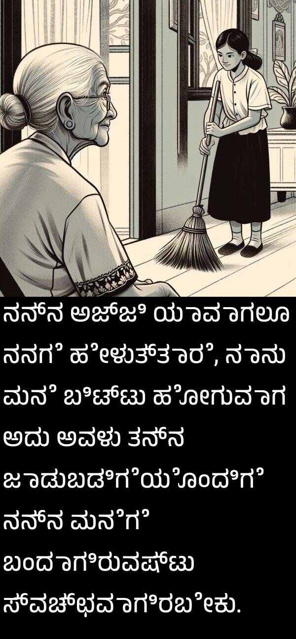 ನನ್ನ ಅಜ್ಜಿ ಯಾವಾಗಲೂ ನನಗೆ ಹೇಳುತ್ತಾರೆ, ನಾನು ಮನೆ ಬಿಟ್ಟು ಹೋಗುವಾಗ ಅದು ಅವಳು ತನ್ನ ಜಾಡುಬಡಿಗೆಯೊಂದಿಗೆ ನನ್ನ ಮನೆಗೆ ಬಂದಾಗಿರುವಷ್ಟು ಸ್ವಚ್ಛವಾಗಿರಬೇಕು.