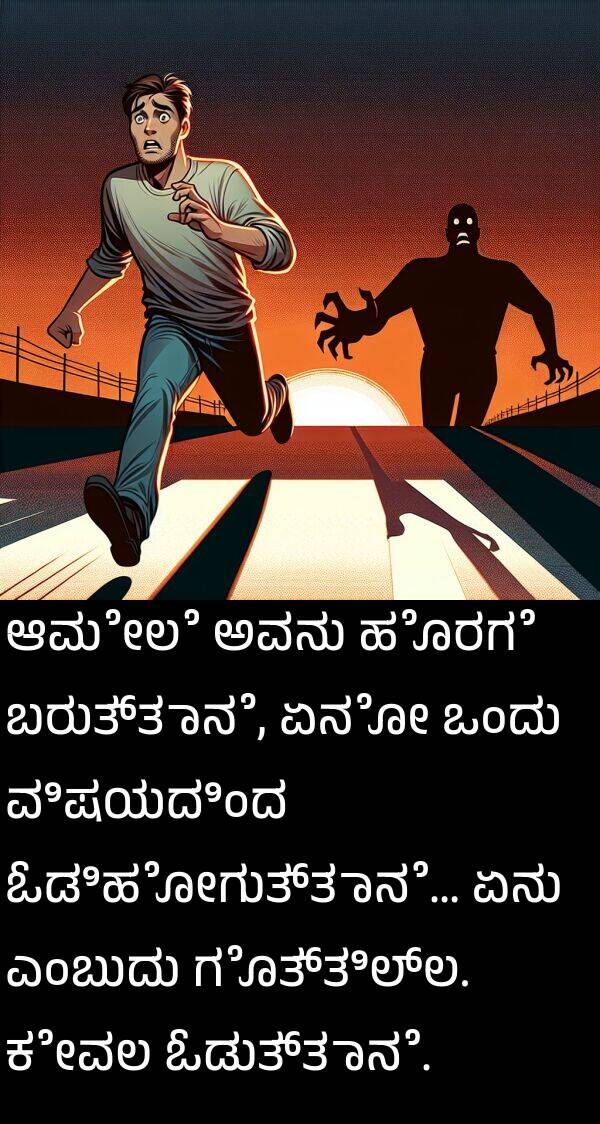 ಆಮೇಲೆ ಅವನು ಹೊರಗೆ ಬರುತ್ತಾನೆ, ಏನೋ ಒಂದು ವಿಷಯದಿಂದ ಓಡಿಹೋಗುತ್ತಾನೆ... ಏನು ಎಂಬುದು ಗೊತ್ತಿಲ್ಲ. ಕೇವಲ ಓಡುತ್ತಾನೆ.
