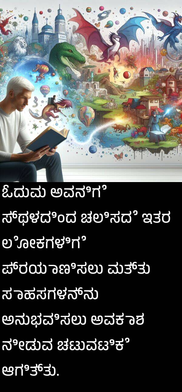 ಓದುವು ಅವನಿಗೆ ಸ್ಥಳದಿಂದ ಚಲಿಸದೆ ಇತರ ಲೋಕಗಳಿಗೆ ಪ್ರಯಾಣಿಸಲು ಮತ್ತು ಸಾಹಸಗಳನ್ನು ಅನುಭವಿಸಲು ಅವಕಾಶ ನೀಡುವ ಚಟುವಟಿಕೆ ಆಗಿತ್ತು.