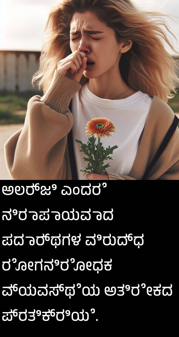 ಅಲರ್ಜಿ ಎಂದರೆ ನಿರಾಪಾಯವಾದ ಪದಾರ್ಥಗಳ ವಿರುದ್ಧ ರೋಗನಿರೋಧಕ ವ್ಯವಸ್ಥೆಯ ಅತಿರೇಕದ ಪ್ರತಿಕ್ರಿಯೆ.