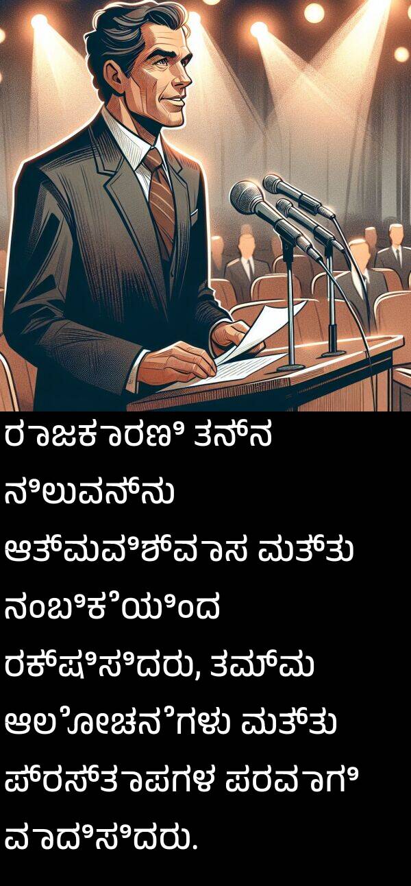 ರಾಜಕಾರಣಿ ತನ್ನ ನಿಲುವನ್ನು ಆತ್ಮವಿಶ್ವಾಸ ಮತ್ತು ನಂಬಿಕೆಯಿಂದ ರಕ್ಷಿಸಿದರು, ತಮ್ಮ ಆಲೋಚನೆಗಳು ಮತ್ತು ಪ್ರಸ್ತಾಪಗಳ ಪರವಾಗಿ ವಾದಿಸಿದರು.
