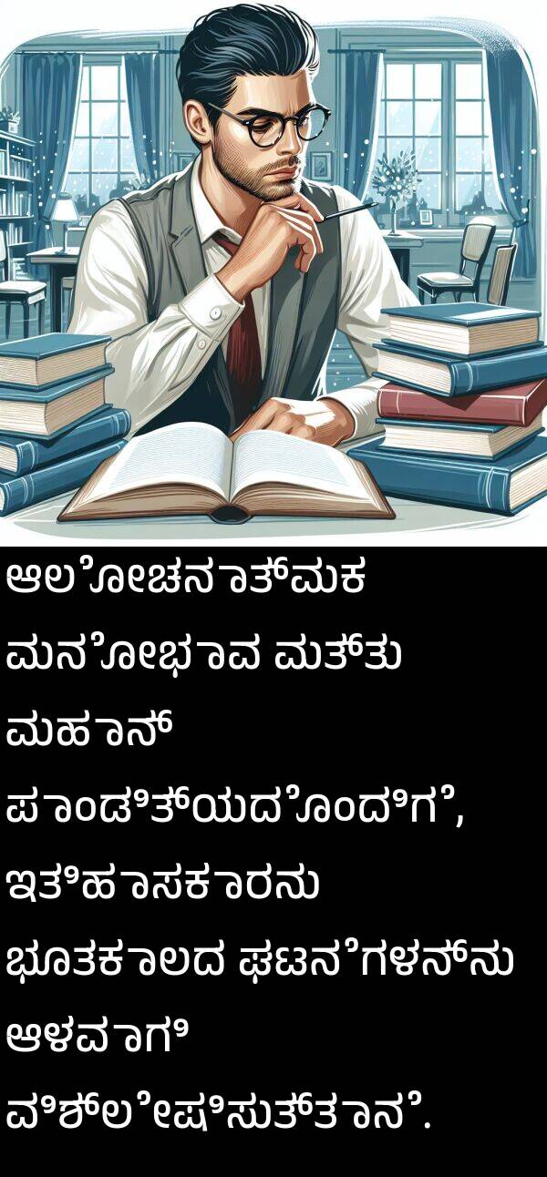 ಆಲೋಚನಾತ್ಮಕ ಮನೋಭಾವ ಮತ್ತು ಮಹಾನ್ ಪಾಂಡಿತ್ಯದೊಂದಿಗೆ, ಇತಿಹಾಸಕಾರನು ಭೂತಕಾಲದ ಘಟನೆಗಳನ್ನು ಆಳವಾಗಿ ವಿಶ್ಲೇಷಿಸುತ್ತಾನೆ.